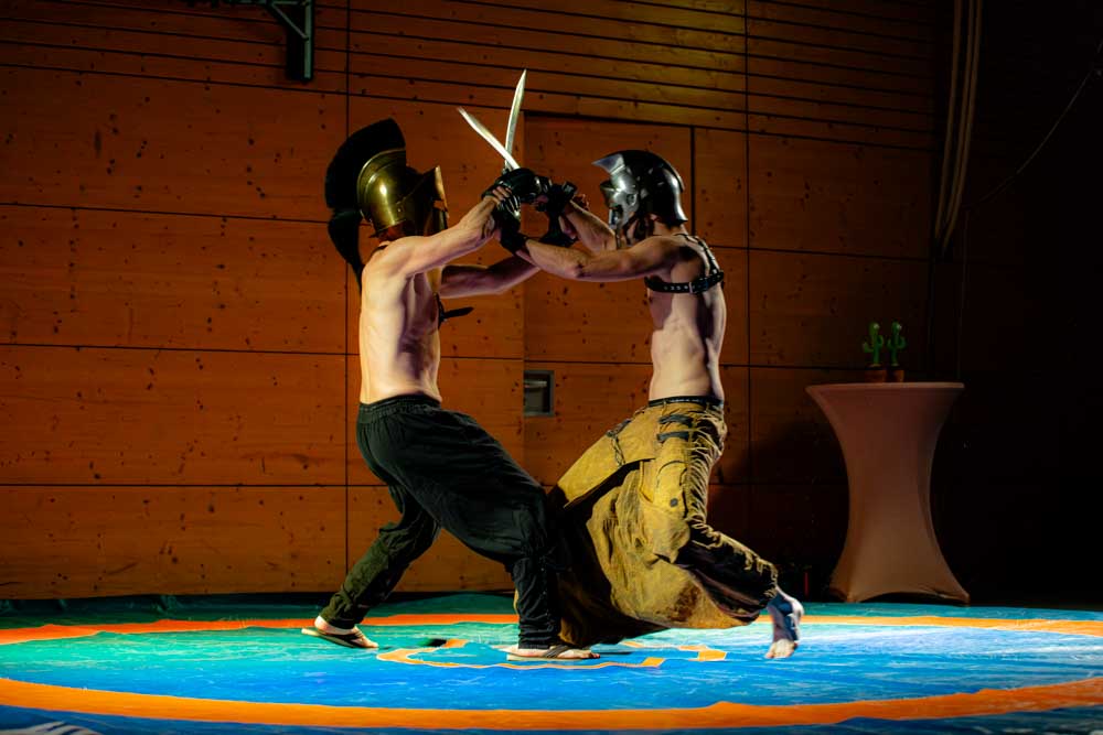 die Gäste gedanklich ins antike Rom: Julius Caesar höchstpersönlich lud in seine Arena ein, wo die FreeFight-Abteilung mit spektakulären Kämpfen für Spannung sorgte. Ein überraschender Parkour-Einsatz lieferte schließlich die ersehnte Pizza – ein Highlight mit Augenzwinkern.