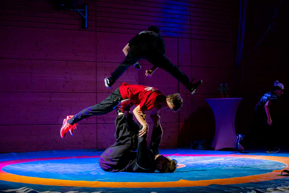 Gemüse und Rosmarinkartoffeln sowie eine vegetarische Alternative – leitete zum großen Finale über. Die Akrobatikabteilung des SVE beeindruckte mit einer vielseitigen Show aus Hoop-, Partner- und Luftakrobatik. Kraft, Eleganz und Leichtigkeit verschmolzen zu einem eindrucksvollen Abschluss auf der Bühne.