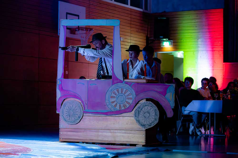 Mit Arancini auf Rucola wurde der nächste Gang serviert, bevor die Gäste in die Welt der italienischen Mafia eintauchten. Eine actionreiche Inszenierung von Parkour Eschbach, inklusive Verfolgungsjagden und stilechten Fahrzeugen, brachte Nervenkitzel auf die Bühne.