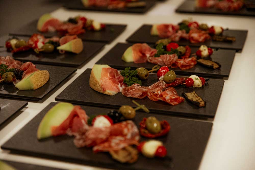 Mit einer atmosphärischen Darbietung entführten sie das Publikum an einen lauen Sommerabend in Rimini und eröffneten tänzerisch den Abend. Es folgte der erste Gang – eine kunstvoll angerichtete italienische Vorspeisenplatte.